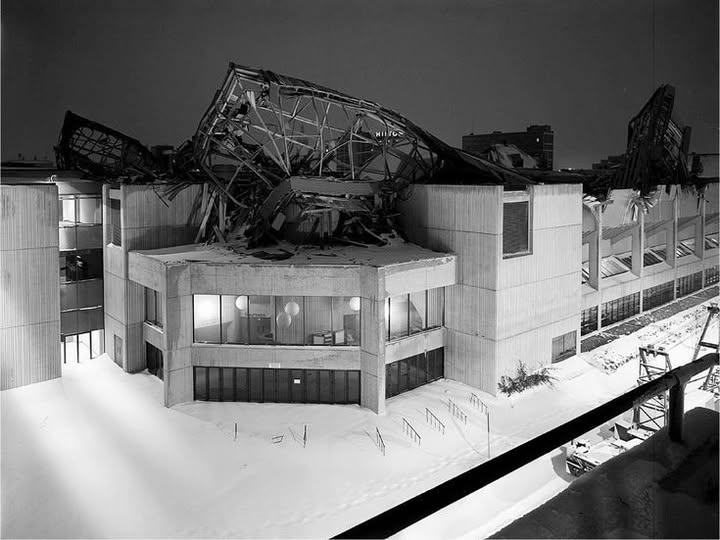 During the litigation process, KlingStubbins claimed the accident was due to heavy snowfall but engineering analysts proved that snow was not a factor; the reason for the roof caving in, they determined, was the design, specifically that its bracings weren’t strong enough due to “under-sizing and underestimation of the probable loadings.” The roof had begun to fail during construction and continued to do so shortly after installation, investigators said, attributing the failure in part to the unprecedented use of and faith in computer analysis. The Civic Center reopened with a reinforced roof on January 17, 1980, exactly two years after the collapse, and still rests atop the same four columns as it did in 1980. In an ironic twist, the accident and rebuilding gave new meaning to the nickname Hartford’s had for some 200 years, “The Insurance Capital of the World.”