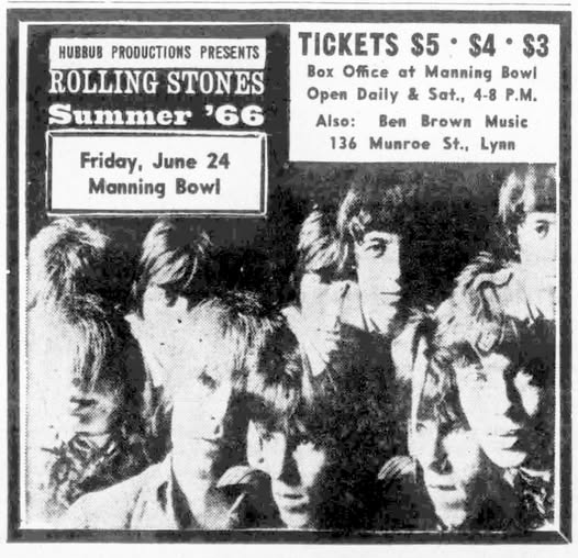 On June 24, 1966, Manning Bowl hosted its first major rock concert, headlined by The Rolling Stones, and things didnāt go even half as smoothly as organizers, fans and the band had hoped. The Stones made the venue the first stop on their 31-city North American tour, with The McCoys,Ā The StandellsĀ and Bostonās ownĀ The ModsĀ as opening acts, and everything was fine until 10 songs into their set when it started raining and the crowd surged toward the flimsy stage.