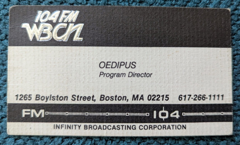 A temp job at Tufts involved answering phones during the receptionist’s lunchbreak, but he did it with such dramatic flair that coworkers said he should be in radio. A roommate who volunteered at WBCN told Oedipus that popular on-air personality Charles Laquidara was looking for a writer and Oedipus talked his way into the volunteer position.