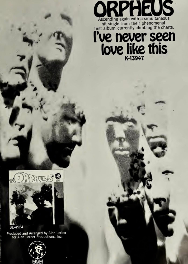 Orpheus’ self-titled debut LP, featuring the single “Can’t Find The Time,” was released in early 1968, produced with the type of orchestration for which Lorber was known. “Can’t Find the Time” reached #80 in the Billboard Hot 100 and to support the album the group recorded one of first scripted music videos.