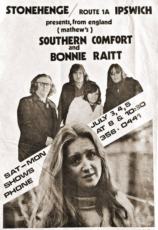 Agents and managers liked to book their acts at Stonehenge Club because they looked and sounded good. Among the many performers were Boz Skaggs, Bo Diddley, Al Kooper, Commander Cody & The Lost Planet Airmen, Billy Squier (with The Sidewinders), Leo Kottke, John Lee Hooker, Martin Mull, Michael Nesmith (without The Monkees), The Velvet Underground (without Lou Reed), John Hammond Jr., Livingston Taylor, Pearls Before Swine, Mimi Fariña (both with husband, Tom Jans, and solo because she loved the room), Bonnie Raitt, Tim Hardin, The Holy Modal Rounders, Jon Pousette-Dart and Harry Chapin.
